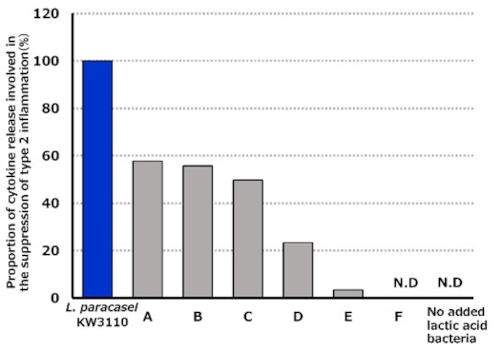 Figure 1. Proportion of type 2 inflammation-suppressing cytokines released by immune cells stimulated with various lactic acid bacteria
