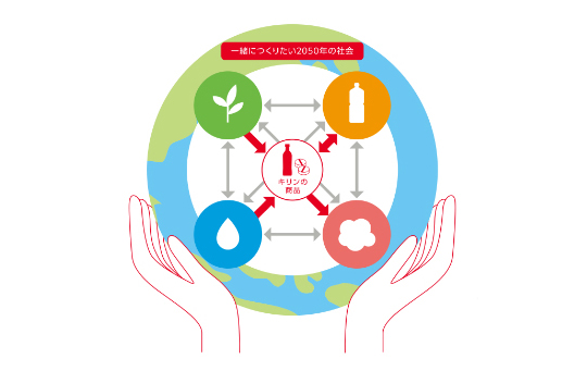私たちは「キリングループ環境ビジョン2050」の実現に向けた取り組みを通じて、お客様をはじめ広くステークホルダーと協働し、自然と人にポジティブな影響を創出することで、こころ豊かな社会と地球を次世代につなげます。