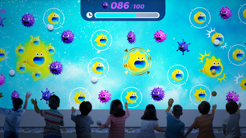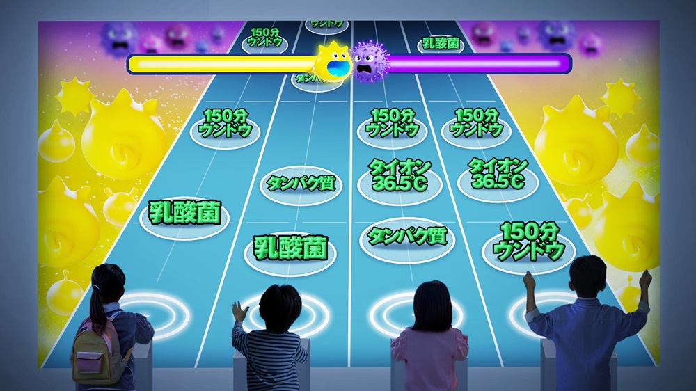 3つのゲームの体験を通して、免疫の仕組みやウイルスの特徴を親子で学べるブースで、それぞれの視点から免疫の大切さを体感できる構成に設計しています。