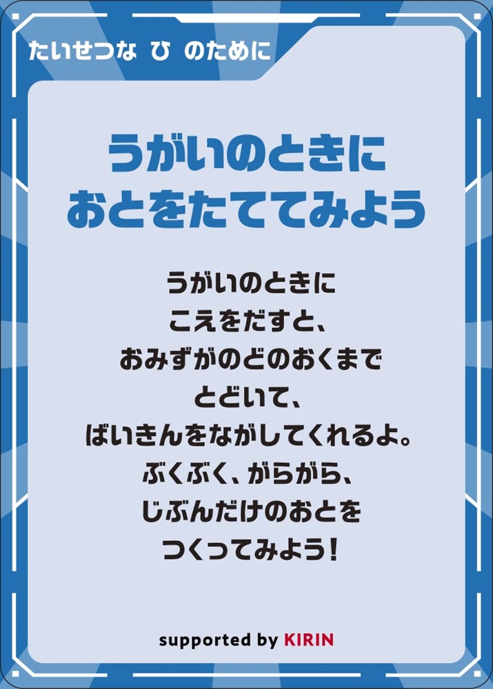 秋冬シーズンは、発表会やお遊戯会といった行事が多く、園児が楽しみにしている「大切な日」を迎えるための体調管理が保護者や教育現場の大きな課題となります。こうした背景を踏まえ、キリンは免疫ケア推進園と家庭が連携して取り組める「免疫ケアサポートアクション」を、短期集中の「3週間チャレンジ」として実施します。本プログラムで行う免疫ケア活動は、順天堂大学医学部の小林弘幸教授監修のもと、「食事、運動、睡眠、手洗い・うがい」に加え「呼吸」の重要性にも取り組む内容で、園児がみんなで楽しみながら学べるよう工夫しています。子どもたちが「大切な日」を元気に迎えられるようにするとともに、また、この取り組みをきっかけに、日常生活での健康習慣につながる環境づくりを目指します。