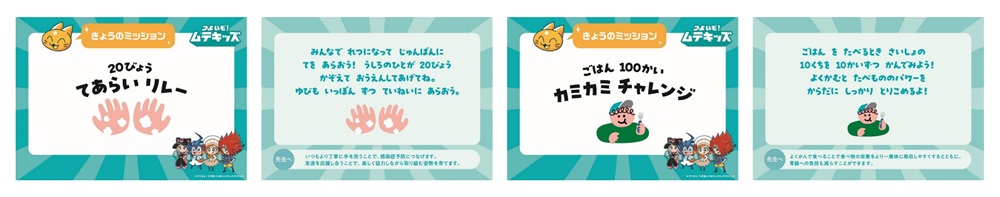 クラスの中から日替わりで「けんこう大臣」を任命。「けんこう大臣」は、その日の「免疫ケアミッション」を設定し、クラスみんなで取り組みます。