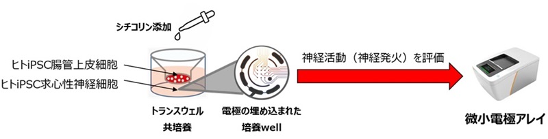 図3.腸管上皮細胞と神経細胞の共培養系を用いた微小電極アレイによる神経活性化評価