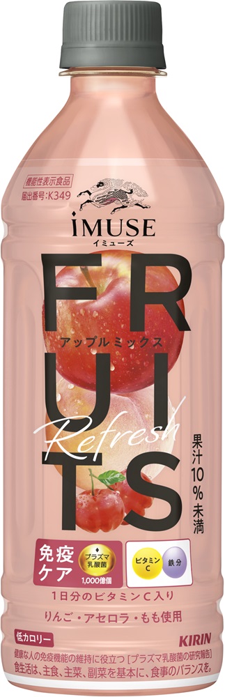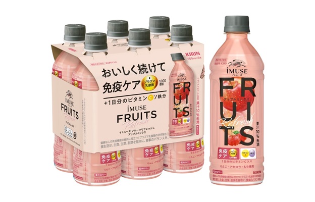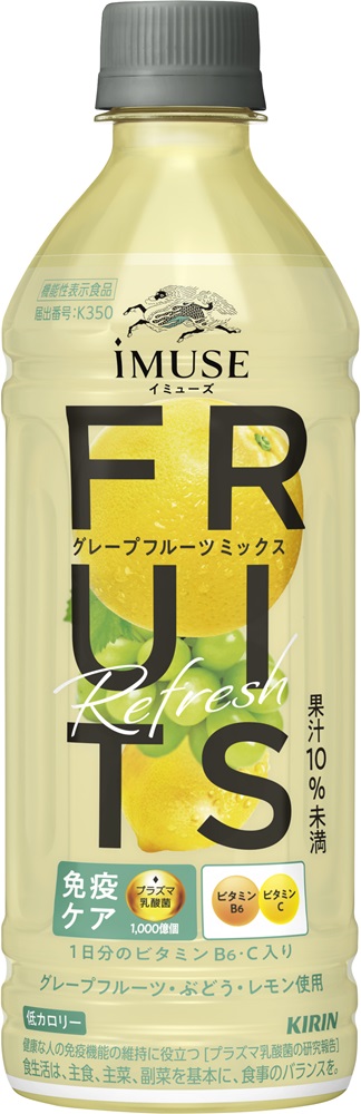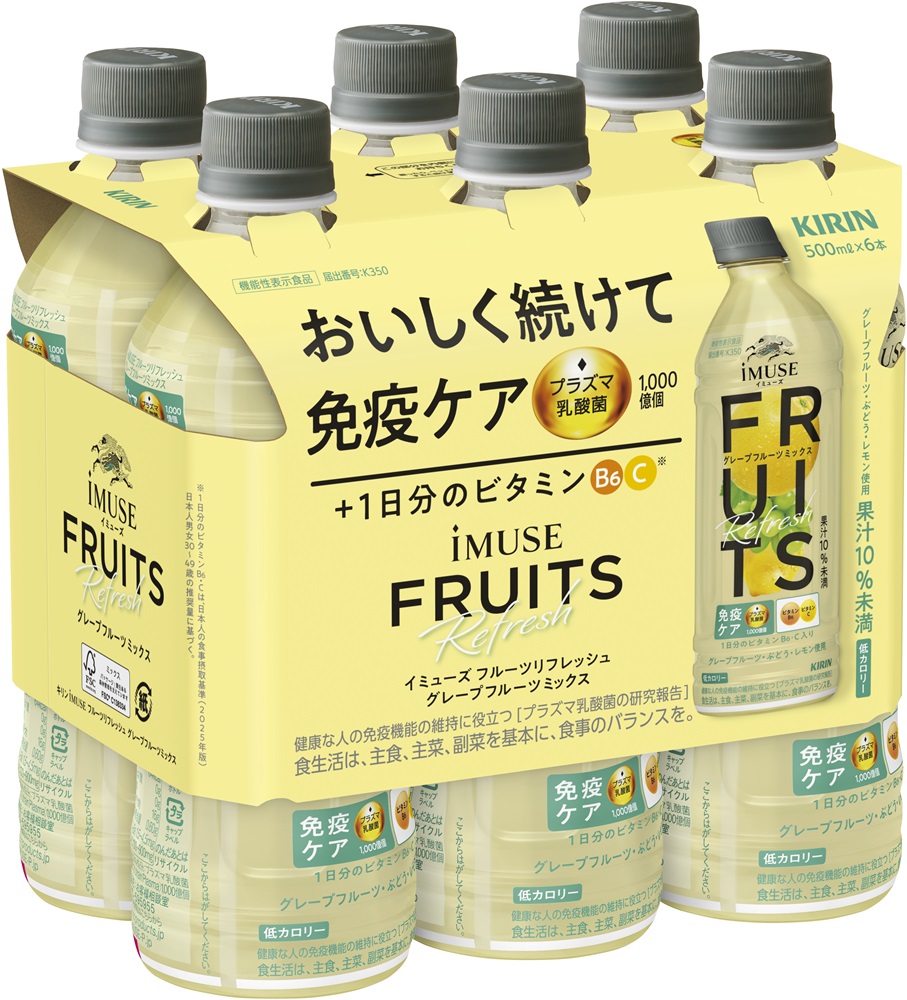 キリンビバレッジ株式会社(社長 井上一弘)は、キリンの独自素材「プラズマ乳酸菌」を配合し、「健康な人の免疫機能の維持をサポート」する機能性表示食品「iMUSE(イミューズ)」ブランドより、新シリーズとなる「キリン iMUSE フルーツリフレッシュ グレープフルーツミックス」と「キリン iMUSE フルーツリフレッシュ アップルミックス」の2種類を4月14日(火)より全国で新発売します。