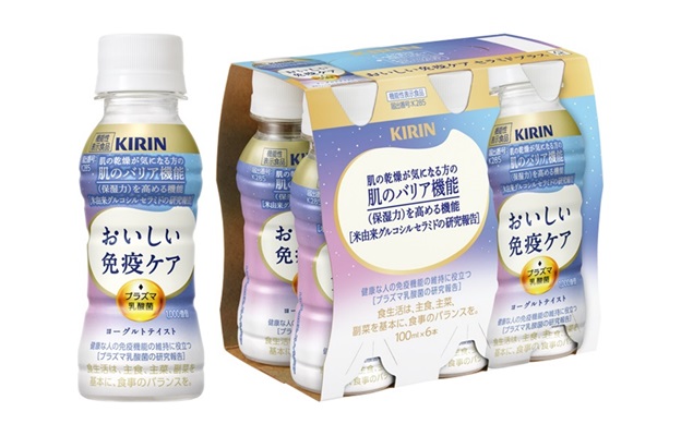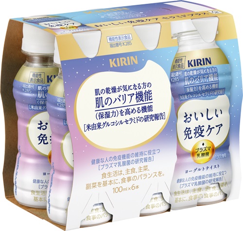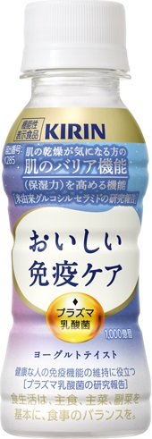 こうした背景から肌ニーズにこたえる商品として、免疫ケアと肌ケアを両立できる機能性表示食品「キリン おいしい免疫ケア セラミドプラス」を3月3日(火)に発売します。本商品は、「プラズマ乳酸菌」で免疫ケアを、「米由来グルコシルセラミド」で肌のバリア機能(保湿力)を高める機能をサポートし、健康的な美しさの実現を目指します。