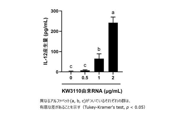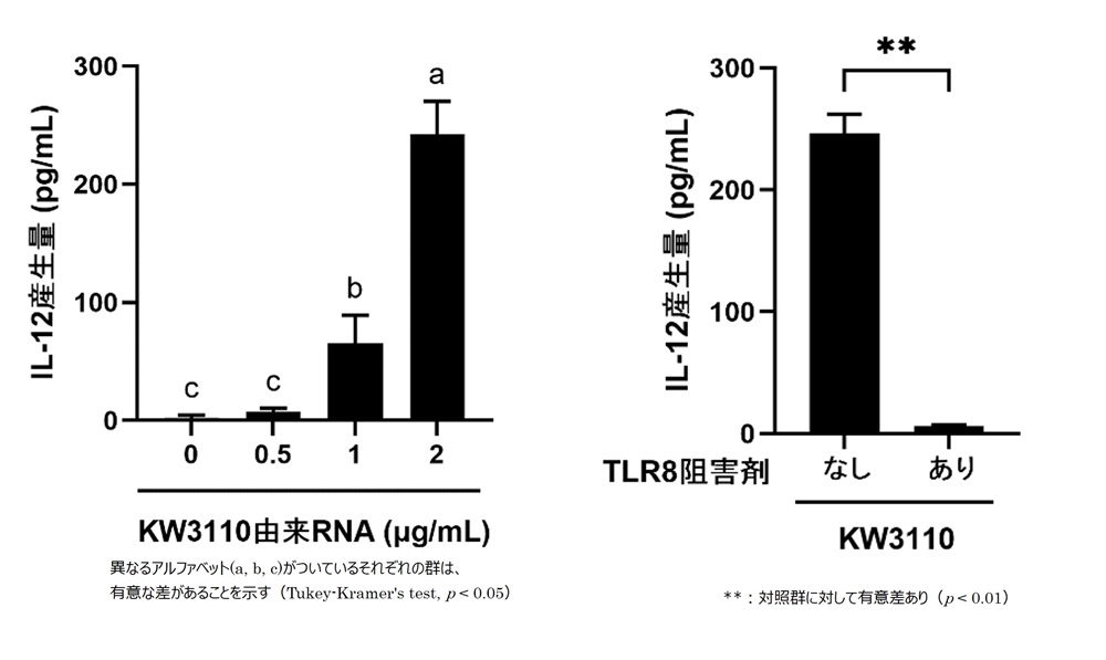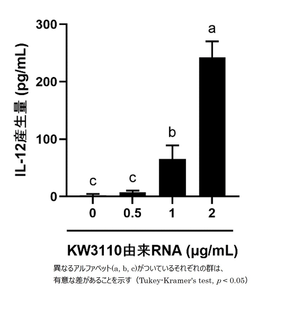 研究成果③:乳酸菌L. パラカゼイ KW3110由来のRNAがIL-12産生を誘導することを確認