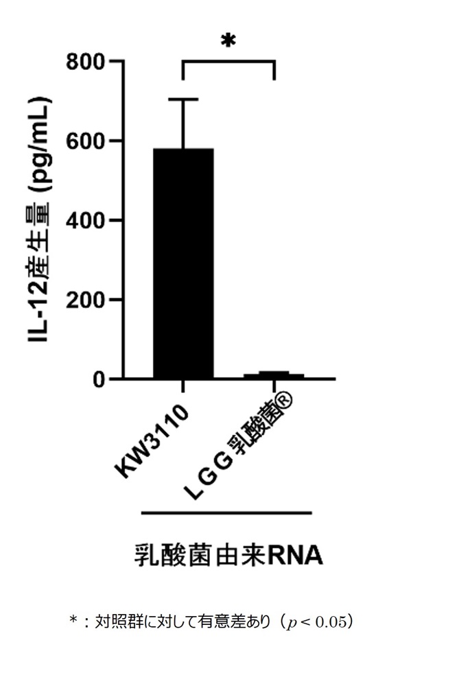 図4. 乳酸菌L. パラカゼイ KW3110由来RNAとLGG乳酸菌®由来RNAのIL-12産生誘導能の比較