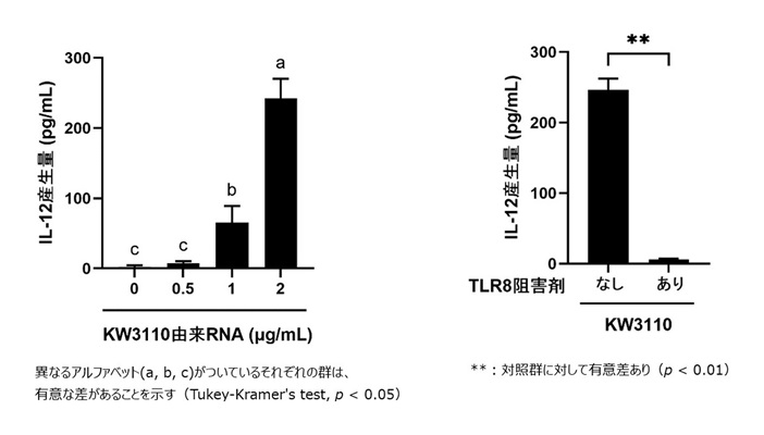 図3. 乳酸菌L. パラカゼイ KW3110由来RNAとTLR8のIL-12産生誘導への関与