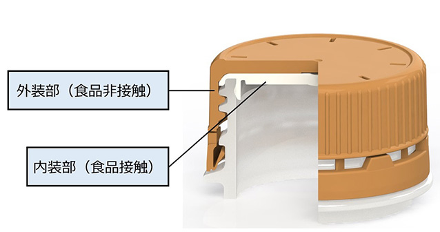 2024年に、日本山村硝子株式会社と共同で、酒類飲料のペットボトルに使用するキャップから同一キャップへの水平リサイクル実用化に向けた、日本初の実証実験を実施しました。この取り組みはキャップの外装部(食品非接触)にリサイクル樹脂を10%混合した2ピースキャップを使用することで、同一キャップへの水平リサイクルを可能とする取り組みです。当実証実験では約4万個のキャップを使用し、GHG排出量を1個あたり約1.7g削減できる見込みです。